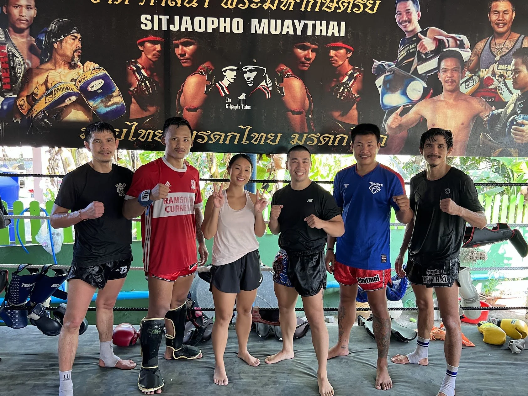 We were so lucky to have met both Phet Ek (Kru O) on the far-left and Phet Tho (Kru F) on the far-right during our first visit to Sitjaopho Muay Thai Gym in 2023!